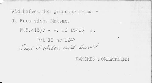 //// Vid hafvet der grönskar en mö -J. Eurs visb. Maksmo. //// W.5.4(5)? - v. af 1545? s. //// Del II nr 1247 //// RANCKEN FÖRTECKNING ////