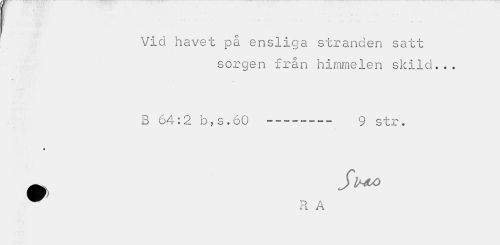 //// • .. . t . y» V r '" V »K //// Vid havet på ensliga stranden satt //// sorgen från himmelen skild... //// B 64:2 b,s.60 --- 9 str. //// 9 ////