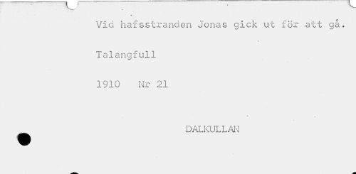 //// Vid hafsstranden Jonas gick ut för att gå. //// Talangfull //// 1910 Nr 21 //// t. //// w 4 //// DALKULLAN ////