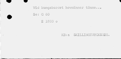 //// Vid kungabordet hovmannar tömma.., ^ Se: G 60 //// 1833 o //// KB*, s SKILLINGTRYCKSREG. //// * ////