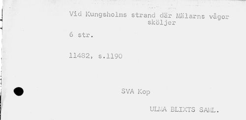 //// ."•¦—••». L. <fc k ,, . . //// Vid Kungsholms strand där Målarns vågor j sköljer //// 1 6 str. //// i //// 11482, s.1190 //// ULJvIA BLIXTS SAML. ////