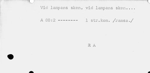 //// Vid lampans sken? vid lampans sken... A 88:2 --- 1 str.kom. /ramsa./ //// R A ////