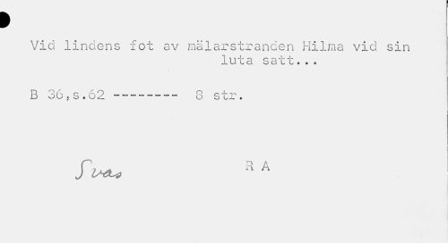 //// > //// Vid: lindens fot av mälarstranden Hilma vid sin //// i uta sa 11•.• //// B 36,s.62 --- 8 str. //// J"W# R A ////