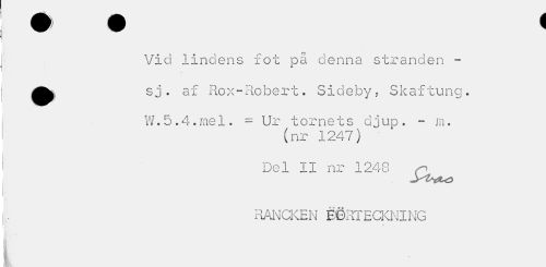 //// Vid lindens fot på denna stranden -^^ s j . af Rox-Robert. Sideby, Skaftung. //// W.5.4.mel. = Ur tornets djup. - m. //// (nr 1247) //// Del II nr 1248 /n //// -Wvto //// RANCKEN HORTECKNING //// / //// i I //// I ////