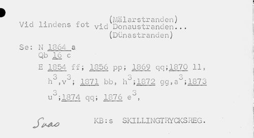 //// I //// > //// - r , (Mälarstranden) Via linaens xoc vid Donaustranden... //// (Dunastranden) //// Se: N 1364 a Qb 16. c //// E 1854 ff; 1856 pp; 1869 qq;1870 11, j //// tmmmmm...— ——i»¦ m (r»u»MraiM.-jiwkimi X J. -• J- — pKnwniww»i» ' ... //// 'A v"; 1871 bb, h°;1872 gg,a";1873 j //// u°;1874 aq; 1876 e°, i //// f //// KB : s SKILLINGTRYCKSREG. //// J ////