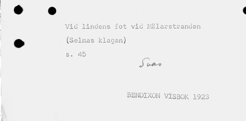 //// Vid lindens fot vid Mälarstranden ^^ (Selmas klagan) //// s. 45 //// J //// BENDIXON VISBOK 1923 //// IWKv ////