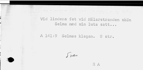 //// * jr * " " «¦ ¦* ' * * * * "" r ¦ i. //// * r » * " » P" -W - - //// ' ^ . J! W 4. - . . • //// Vid lindens fot vid Mälarstranden skön //// Selma med sin luta satt... //// A 141:9 Selmas klagan. 8 str. //// J //// o a //// A A ////