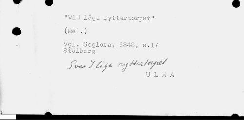 //// 11 Vid låga ryttartorpet" //// Vgl. Seglora, 8848, s.17 Stålberg //// y af * ^^ //// U L M A ////