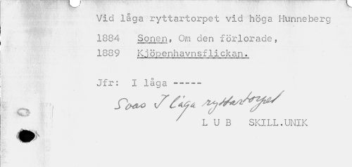 //// > ' ,.¦.•- i • •• * • • .. • //// V i '; f f //// Vid låga ryttartorpet vid höga Hunneberg //// 1884 Sonen, Om den förlorade, 1889 K j öp e nh a vn s f 1 i clc a n» //// Jfr: I låga --- //// ^ i/Ap^^^y //// L U B SKILL.UNIK ////
