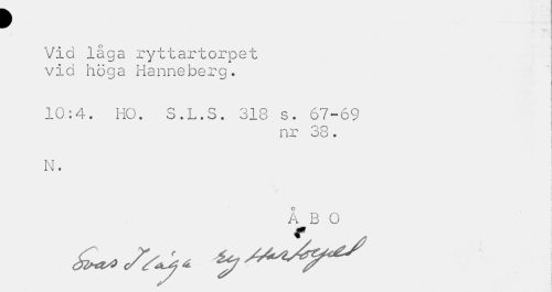 //// ¥ //// Vid läga ryttartorpet vid höga Hanneberg. //// i //// 10:4. HO. S.L.S. 318 s. 67-69 //// ^ r» Q Q i ii. JO . //// N. //// ÅBO ////