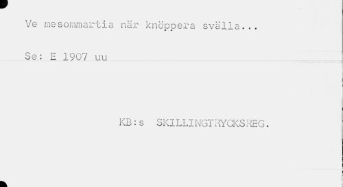 //// Ve me sommartia när knoppera svälla... _Se: E 1907 uu_i___ //// i //// KB:s SKILLINGTRYCKSREG. //// P //// im //// I //// k i ////