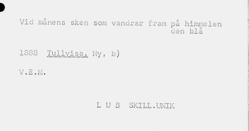 //// f //// Vid månens sken som vandrar fram på himmelen //// den blå //// 1888 Tullvisa, Ny, b) //// ! //// \/ P M i //// V ? jlj « IVi. //// | //// L U B SKILL.UNIK ////