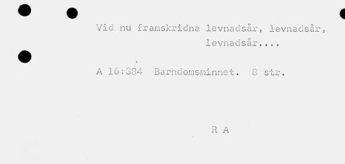 //// Vid nu framskridna levnadsår, levnadsår, //// levnadsår... //// A 16:334 Barndomsminnet. 8 str. //// R A ////
