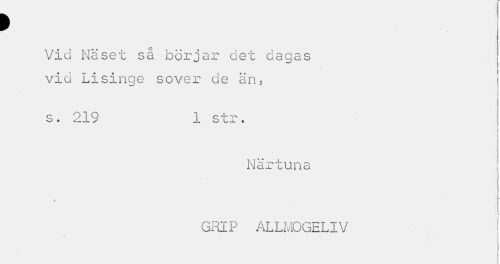 //// Vid Näset så börjar det dagas vid Lisinge sover de än, //// i //// s. 219 1 str. //// \ //// | //// ) //// N ä r t u n a I //// I i //// e //// GRIP ALLMOGELIV ////