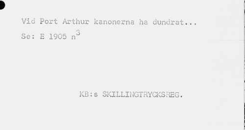//// r //// Vid Port Arthur kanonerna ha dundrat... Se: E 1905 nd //// KB:s SKILLINGTRYCKSREG. ////