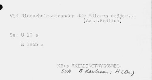 //// i . I //// Vid Riddarholmsstranden där Mälaren dröjer... //// (Av J.Frölich) //// Se: U 10 a E 1865 x //// KB : s S Kl L LI NGT RYCKS RE G. //// Si//? £> KMA/k^t^ : H C^hJ ////