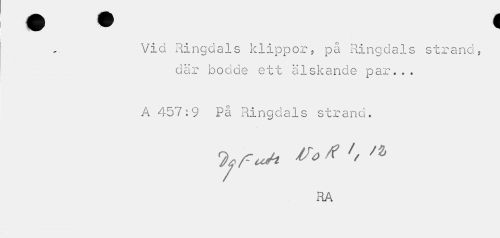 //// Vid Ringdals klippor, på Ringdals strand, där bodde ett älskande par... //// A 457:9 På Ringdals strand. //// Ä; ^ i?» * '> n //// RA ////