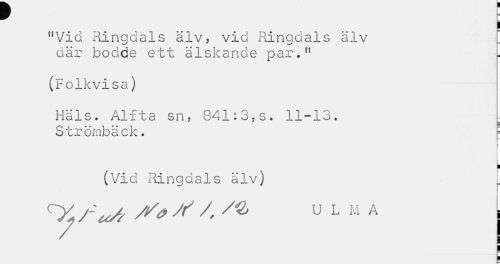 //// i //// "Vid Ringdals älv, vid Ringdals älv [ //// där bodde ett älslc ande par.n L //// (Folkvisa) //// Häls. Alfta sn, 841:3,s. 11-13. - //// Strömbäck. I //// 1 //// i //// . l //// (Vid Ringdals älv) ^Vy-uA y* # 4 U L M A | ////