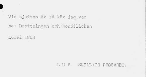 //// > //// Vid sjutton år så kär jag var se: Drottningen och bondflickan //// Luleå 1868 //// i \ //// i //// ; //// t \ //// S //// L U B SKILL:TR PRDSAREG. ////