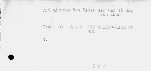 //// ... ' f. ... i :. . - ... T / ... ... 4 " //// i . . - . - ' Vid sjutton års ålder jag var sä ung //// och skön //// / //// j //// ¥ //// f ... //// m //// 7:4/. KO. S.L.S. 352 s. 1120-1122 nr //// / 456 //// ¦ N. //// ÅBO ////