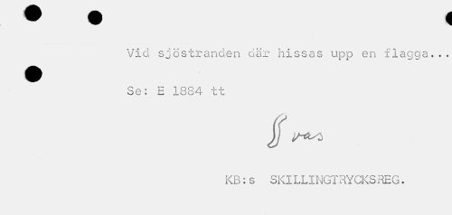 //// Vid sjöstranden där hissas upp en flagga».. Se: E 1884 tt //// jf //// KB:s SKILLINGTRYCKS REG. ////