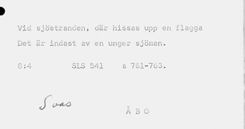 //// > //// Vid sjöstranden? där hissas upp en flagga //// . — //// Det är indast av en unger sjöman. 8:4 SLS 541 s 761-763. //// J //// A 3 O ////