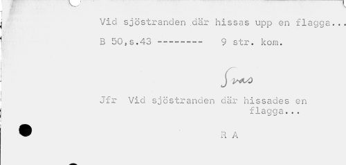 //// Vid sjöstranden .där hissas upp en flagga... //// B 50,s.43 --- 9 str. kom. //// j //// Jfr Vid sjöstranden där hissades en //// x 1 a g g a • . . ////