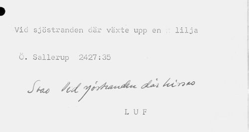 //// > //// Vid sjöstranden där växte upp en :: lilja //// C Si //// O. Sallerup 2427:35 //// L U F //// : i ////