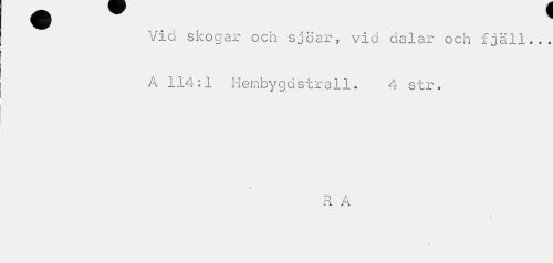 //// Vid skogar och sjöar, vid dalar och fjäll... A 114:1 Hembygdstrall. 4 str. //// s //// R A //// * ////