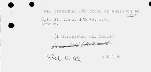 //// 11 Vid Stralsund där bodde en adelsman så //// • 1 i f rik" //// Ögl. St. Anna, 175:78, s.7. ^^ Amman. //// (i Strassburg där bodde) //// <tUc fc u L M A ////
