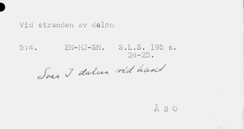 //// f //// Vid stranden av delen //// i //// a V //// 5:4. EN-HJ-SN. S.L.S. 195 s. //// 24-2 //// W « //// ÅBO ////