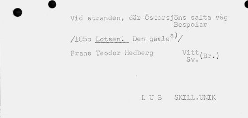 //// Vid stranden, där Östersjöns salta våg //// Bespolar //// a) //// /1855 Lotsen. Den gamle0v //// Frans Teodor Hedberg Vitt/g.,, \ //// Sv. 4 ' //// i //// L U B SKILL.UNIK ////