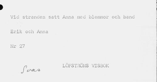 //// > //// Vid stranden satt Anna med blommor och band Erik och Anna //// ! //// L i //// Nr 27 //// n LÖFSTRÖMS VISBOK //// J is-étsz ////