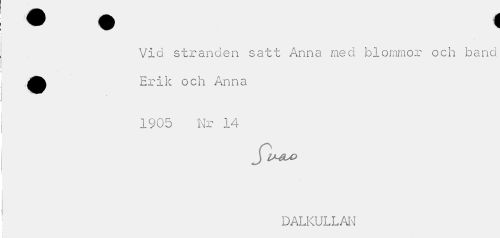 //// Vid stranden satt Anna med blommor och band //// • ' . O *! 1 A //// Erik och rinna //// 1905 'Nr 14 //// DALKULLAN ////