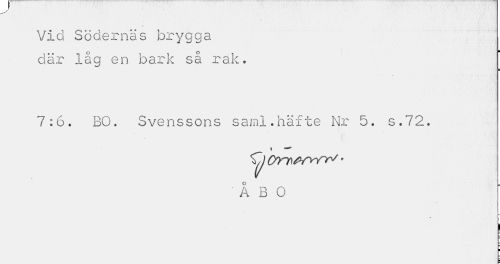 //// Vid Södernäs brygga där låg en bark så rak. //// i //// 7:6. BO. Svenssons saml.häfte Nr 5. s.72. //// Q (yrwYyyw * //// \ ™ //// ÅBO //// I //// I //// i ////