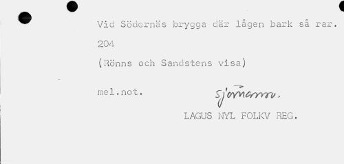 //// ^^ Vid Södernäs brygga där lågen bark så rar. //// 204 //// (Rönns och Sandstens visa) //// . —S» //// rne 1. n o t. o oyviéfrrrv, //// LAGUS NYL FOLKV REG. ////