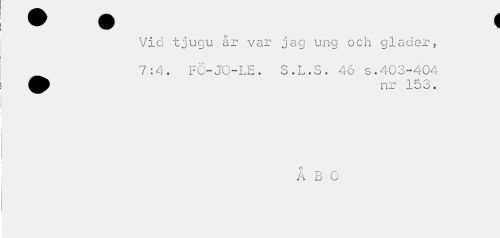//// Vicl tjugu år var jag ung och gläder, 7:4. FÖ-JO-LE. S.L.S. 46 s.403-404 //// ^^ nr //// c //// a d u ////