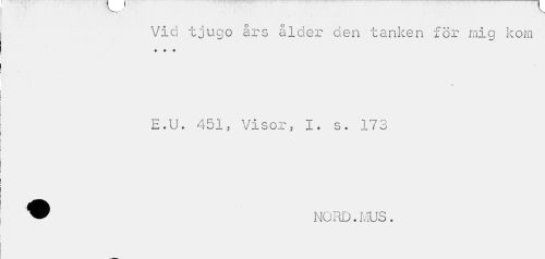 //// —— - //// Vid tjugo års ålder den tanken för mig kom t • • //// E.U. 451, Visor, I. s. 173 w NORD.MUS. ////