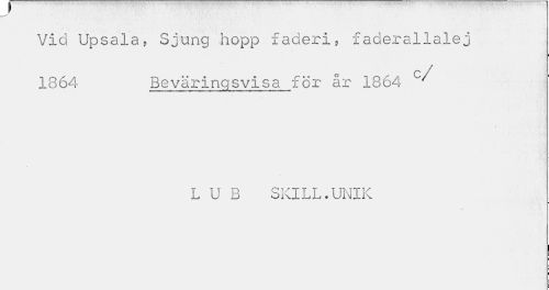//// Vid Upsala, Sjung hopp faderi, faderallalej //// i //// 1864 Beväringsvisa för år 1864 c</ //// L U B SKILL.UNIK //// I //// i ////