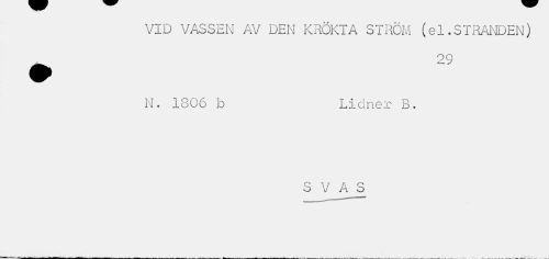 //// VID VASSEN AV DEN KRÖKTA STRÖM (el.STRANDEN) ^ 29 //// N. 1806 lo Lidner B. //// S V_A_S ////