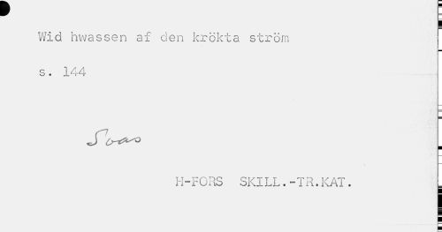 //// w y //// Wid hwassen af den krökta ström s. 144 //// * //// H-FORS SKILL.-TR.KAT. ////