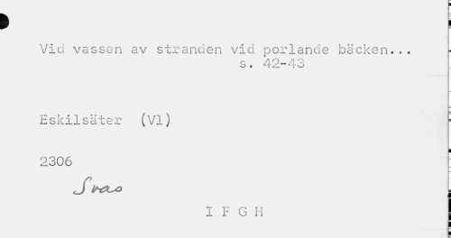 //// I ! //// Vid vassen av stranden vid porlande bäcken... //// s. 42-43 //// Eskilsäter (VI) //// 2306 : //// J i^LX) //// I 1 G H ////