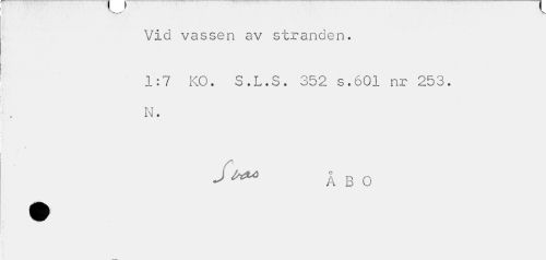 //// — v //// Vid vassen av stranden. //// 1:7 KO. S.L.S. 352 s.601 nr 253. N. //// Jte* ÅBO ////