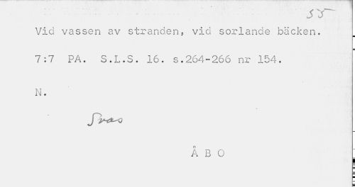 //// V s^s //// Vid vassen av stranden, vid sorlande bäcken. 7:7 PA. S.L.S. 16. s.264-266 nr 154. //// N. //// x //// ÅBO //// I - ////