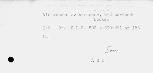 //// ^ i .. ( b » //// Vid vassen av stranden, vid sorlande //// bäcken //// 1:8. Br. S.L.S. 508 s.390-391 nr 153 N. ////