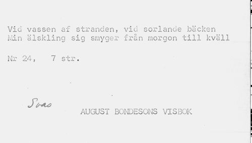 //// I //// Vid vassen af stranden, vid sorlande bäcken Iviin älskling sig smyger från morgon till kväll //// Nr 24, 7 str. . //// I //// » ™ //// AUGUST BONDESONS VISBOK ////