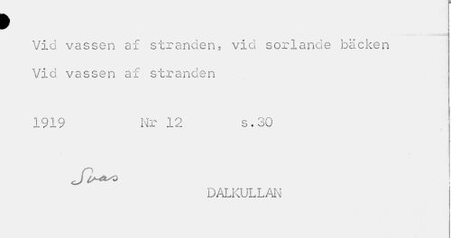 //// > //// Vid vassen af stranden, vid sorlande bäcken Vid vassen af stranden //// 1919 Nr 12 s.30 //// DALKULLAN ////