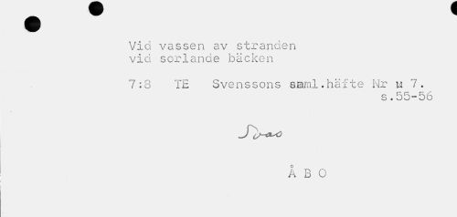 //// Vid vassen av stranden vid sorlande bäcken //// 7:8 TE Svenssons saml.häfte Nr u 7. //// i—« p» .•'* //// s.b5~5ö //// ÅBO ////