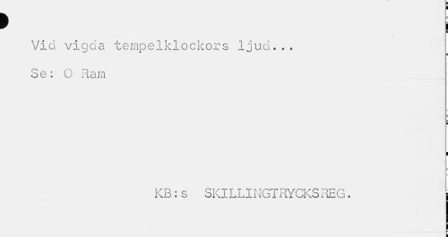 //// > j //// Vid vigda tempelklockors ljud... Se; O Ram //// ¦ i //// KB:s SKILLINGTRYCKSREG. j ////