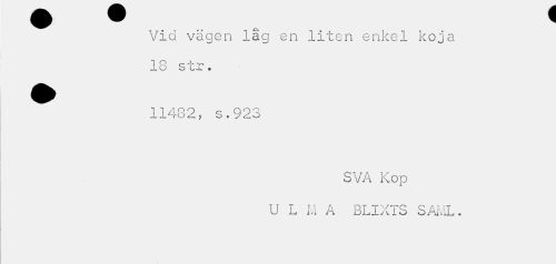 //// Vid vägen låg en liten enkel koja 18 str. //// 11482, s.923 //// SVA Kop U L M A BLIXTS SAML. ////